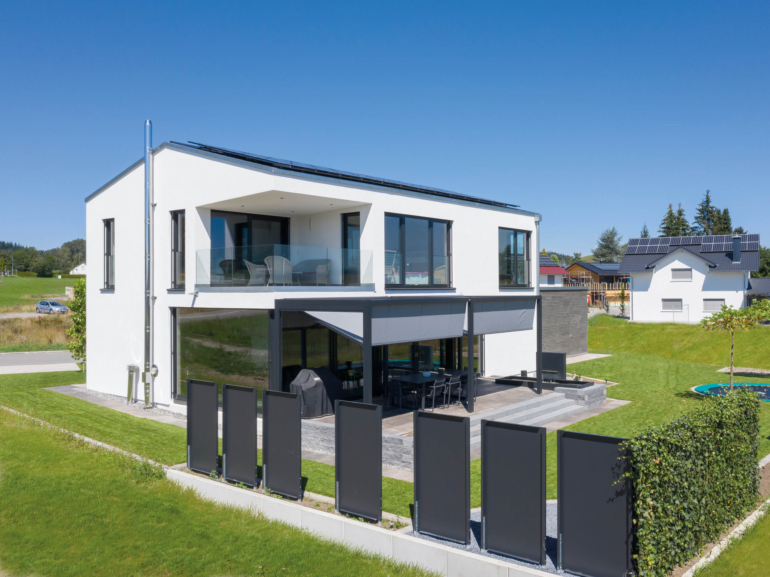 Zwar hat Bauherr Markus Holler das puristische Wohnobjekt im Bauhausstil alleinig geplant, jedoch konnte er sich während der Bauphase entspannt zurücklehnen. Das eingespielte Team der ZimmerMeisterHaus-Manufaktur realisierte sein Plusenergiehaus zügig und ohne Mängel.
