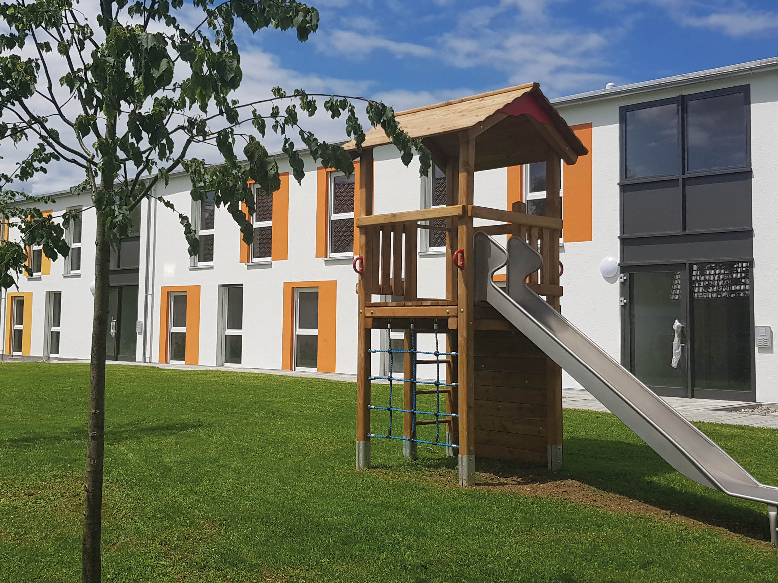 Beim Mehrfamilienhaus für soziale Zwecke und für die Anschlussunterbringung von Geflüchteten, punktete die Ausführung im Rahmen der Holzbauoffensive. Die Nachhaltigkeit im Allgemeinen war dem Bauherrn sehr wichtig, so wurde beispielsweise das Dach begrünt.
